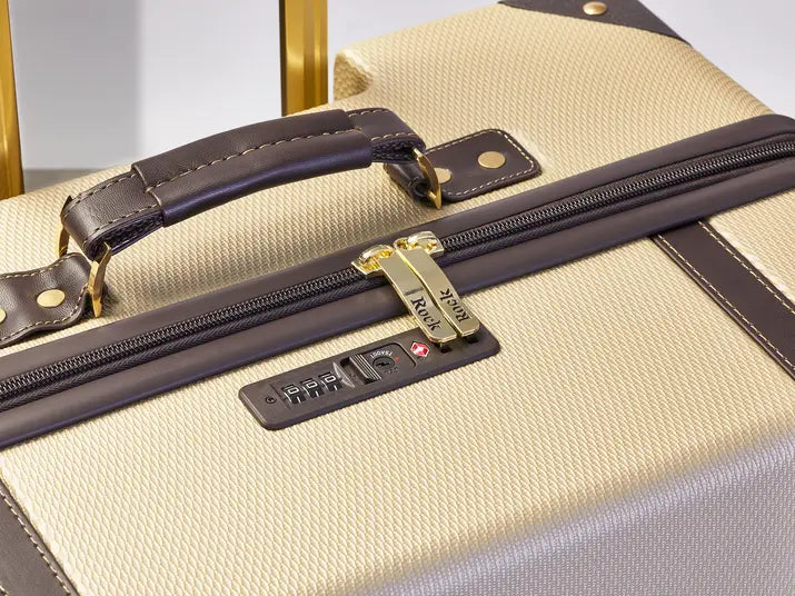 Rock luggage surpasses the known and ordinary with its classic vintage-looking style, stageless wheel handle. The use of outspoken, delicate materials, exquisite detailing and the varied color palette make this range desirable for all be the center of attention with this iconic trunk style suitcase.