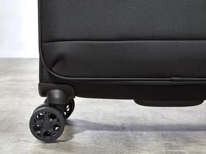 8x easy glide double wheels for improved stability and handling. Effortless 360-degree rotating wheels make manoeuvring around an airport or train stations fast and easy.