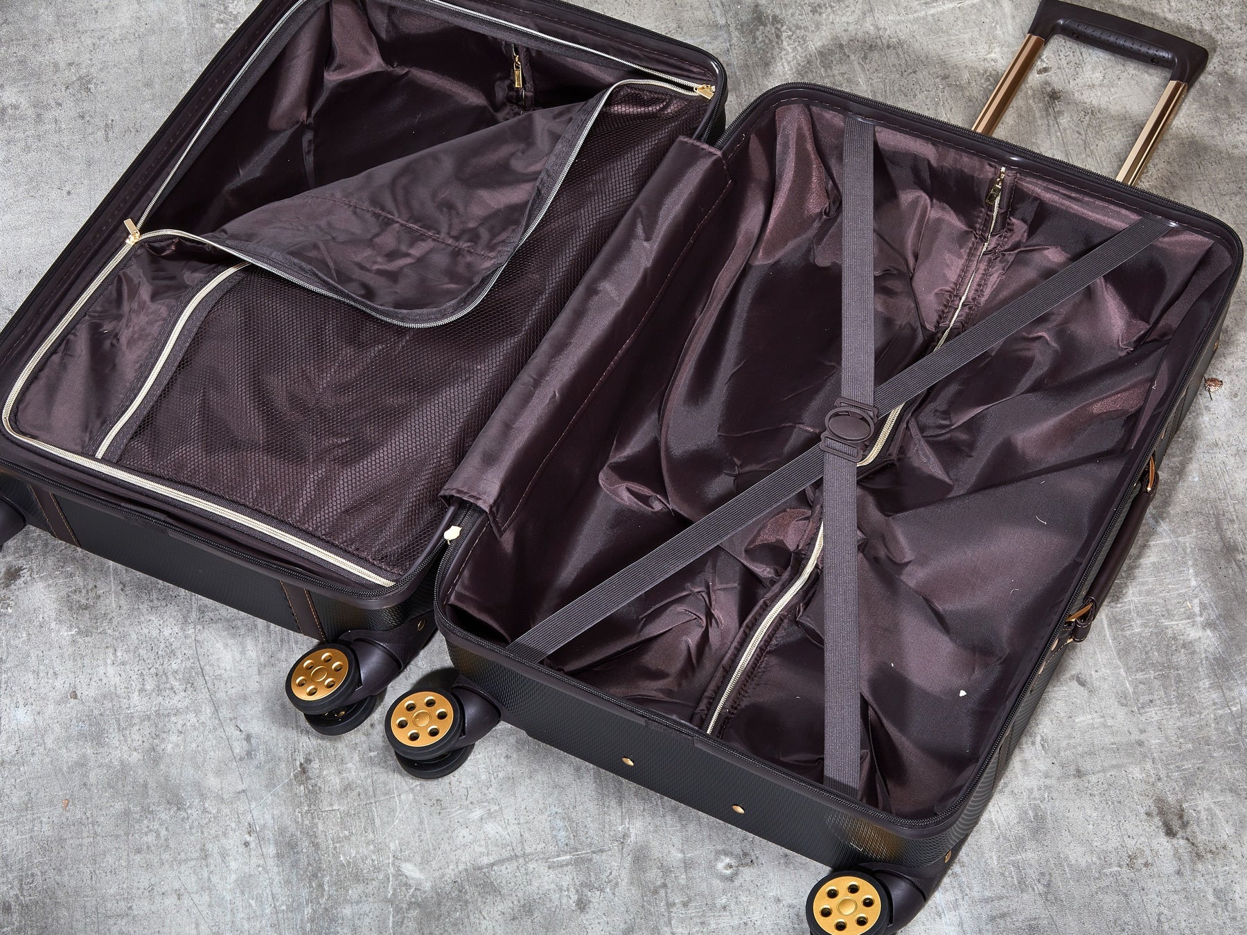 Rock luggage surpasses the known and ordinary with its classic vintage-looking style, stageless wheel handle. The use of outspoken, delicate materials, exquisite detailing and the varied color palette make this range desirable for all be the center of attention with this iconic trunk style suitcase.