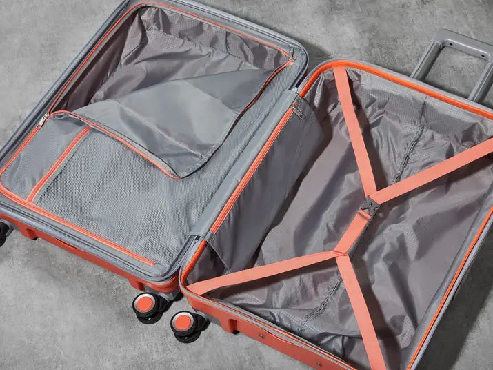The interior of Sunwave has luxurious soft touch lining and a mesh divider section. The design also features a convenient zipped inside pocket and elasticated packing straps to keep your clothes securely in place.