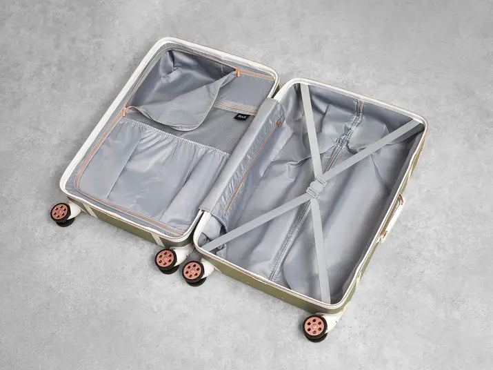 The interior of Vintage has luxurious soft touch lining and a mesh divider section. The design also features a convenient zipped inside pocket and elasticated packing straps to keep your clothes securely in place.
